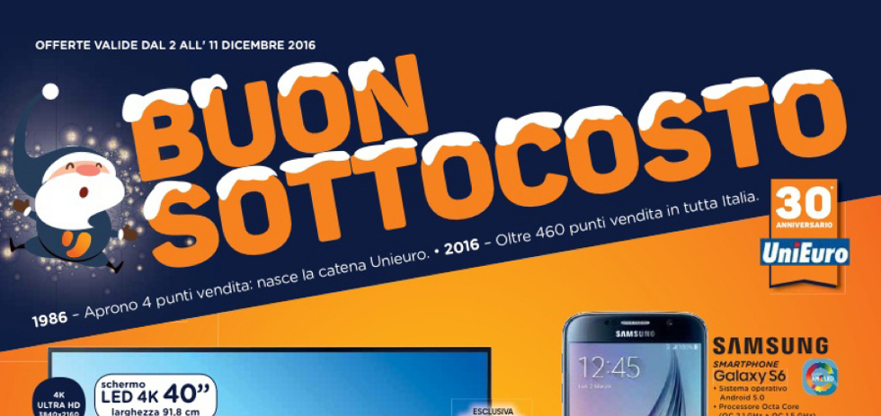 Volantino Unieuro “Buon Sottocosto” dal 2 all’11 Dicembre 2016