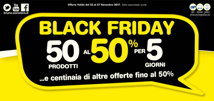 Avete già dato un’occhiata al Black Friday da Euronics Bruno? Il Black Friday da Euronics Bruno ci accompagnerà fino al 27 Novembre 2017 con il volantino intitolato “Black Friday 50 prodotti al 50% per...