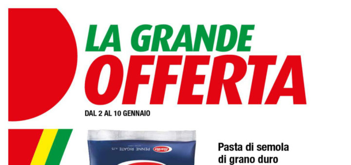 Volantino Iper dal 2 Gennaio 2018 Il nuovo volantino Iper, valido da domani 2 fino al 10 Gennaio 2018, s’intitola “La grande offerta” ed in copertina troviamo la pasta Barilla 1Kg a €0,69. All’interno...