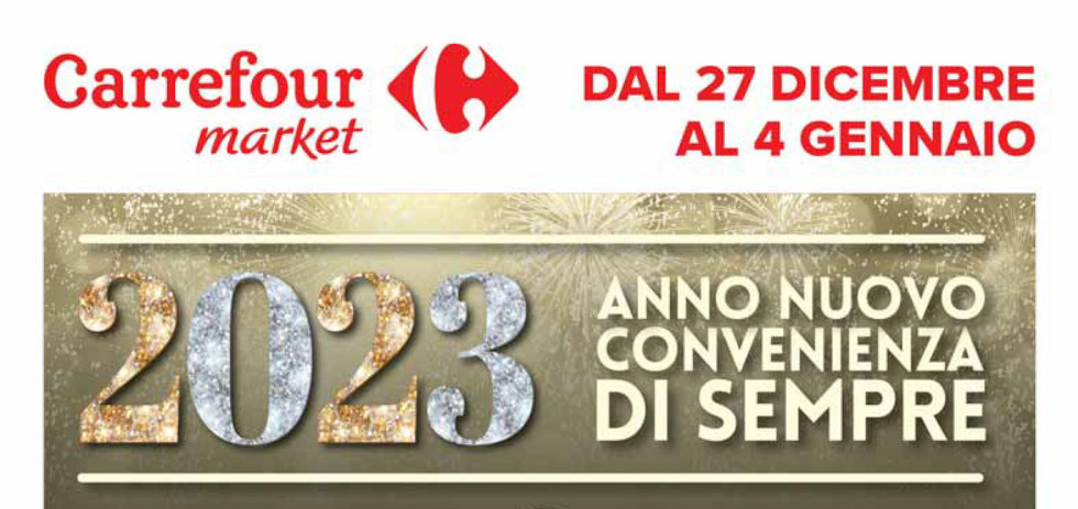 Volantino Carrefour market “Anno nuovo convenienza di sempre” dal 27 Dicembre 2022 al 04 Gennaio 2023