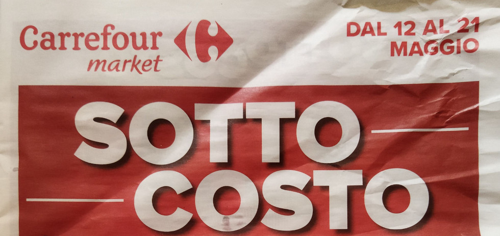 Il titolo è “Sotto costo”, come sempre chiaro per riflettere la convenienza che troviamo all’interno. In copertina infatti abbiamo subito con occasioni come un kg di caffè Lavazza a €5,99 e la birra Moretti a €0,95.