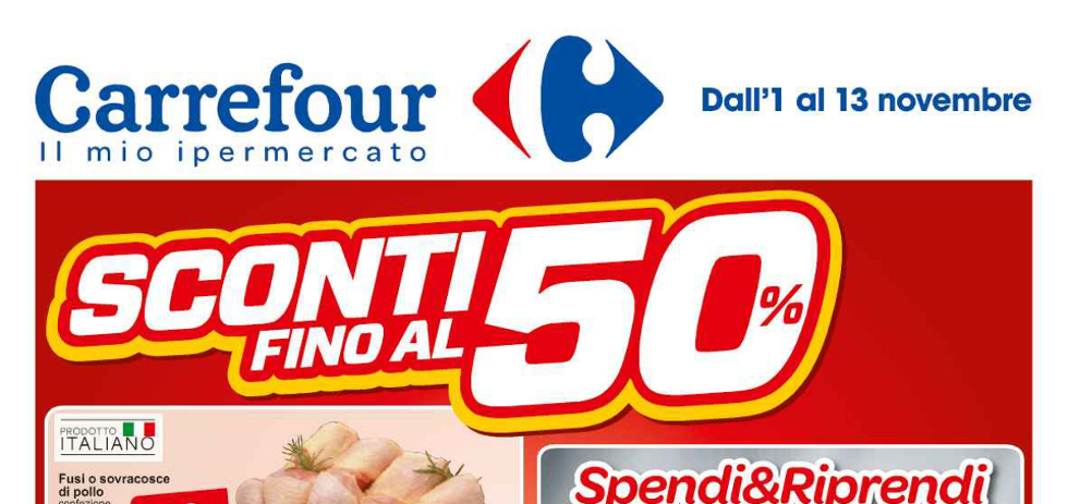 Il nuovo volantino Carrefour, dal titolo “Sconti fino al 50%“, sarà valido dall’1 al 13 Novembre 2016.