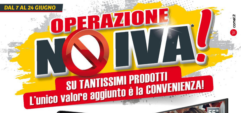 Il nuovo volantino Comet s’intitola “Operazione no IVA” e ci terrà compagnia per il periodo che andrà dal 7 al 24 Giugno 2018.