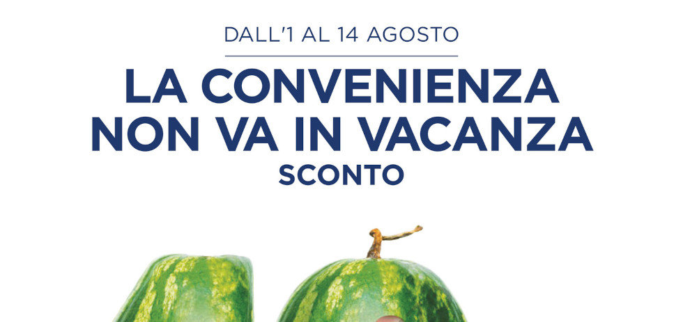 Nessuna sorpresa, conoscendo il tenore di convenienza della catena, del resto preannunciata dall titolo, “La convenienza non va in vacanza“. La coperitna infatti subito ci introietta in un mondo di sconti fino al 40%.