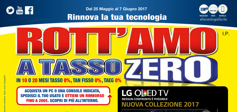 Volantino Euronics Bruno/Castoldi/Galimberti/Nova/Tufano “Rott’amo a tasso zero” dal 25 Maggio al 7 Giugno 2017
