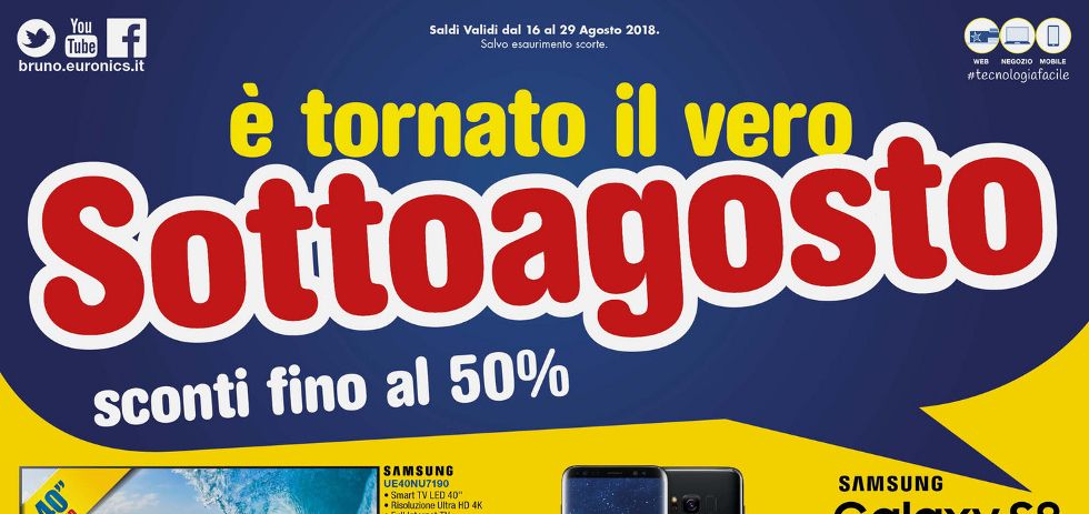 Volantino Euronics Bruno “E’ tornato il sottoagosto” dal 16 al 29 Agosto 2018