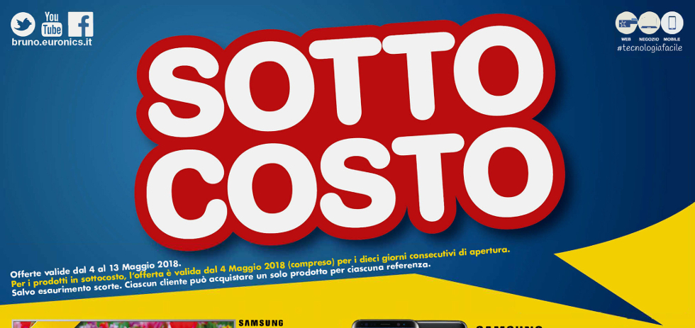 Da oggi parte il nuovo volantino Euronics Bruno “Sotto costo” valido fino al 13 Maggio 2018.