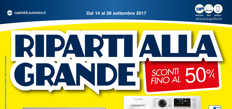 Volantino Euronics Castoldi “Riparti alla grande” dal 14 al 28 Settembre 2017