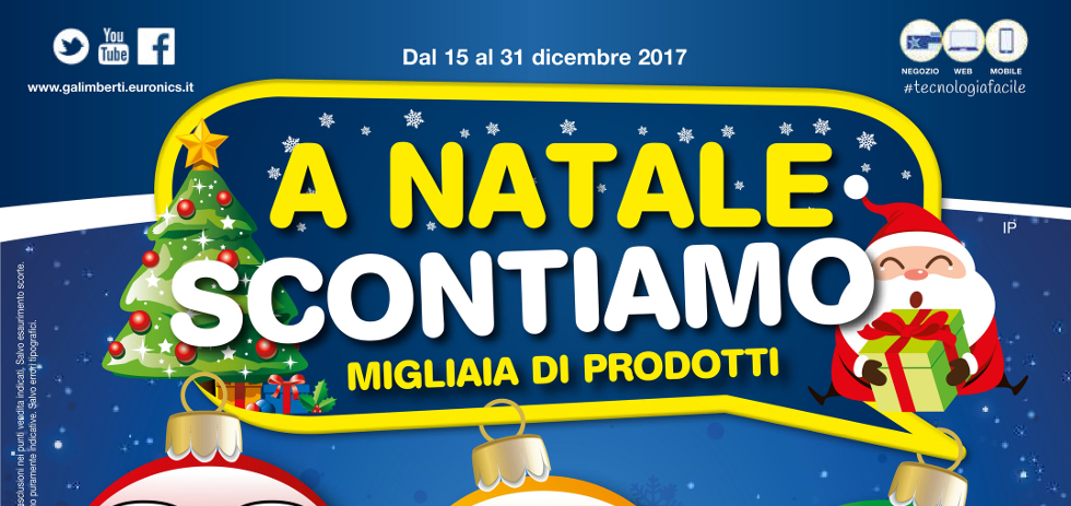 Volantino Euronics Galimberti “A Natale scontiamo migliaia di prodotti” dal 15 al 31 Dicembre 2017