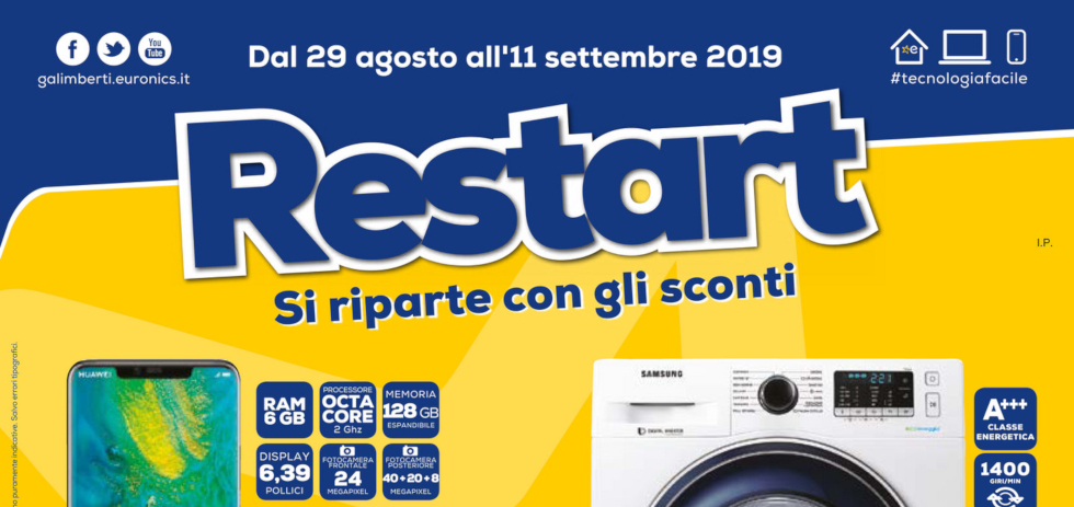 Volantino Euronics Galimberti “Restart” dal 29 Agosto all’11 Settembre 2019