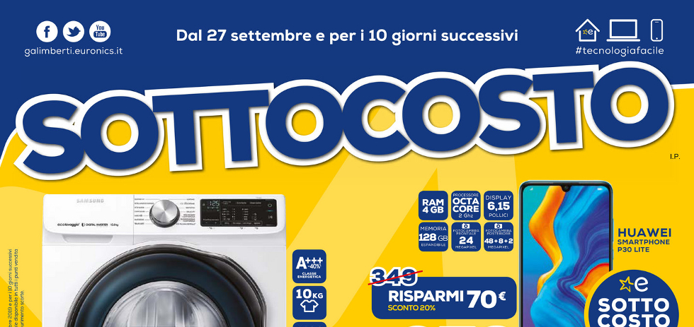 Volantino Euronics Galimberti “Sottocosto” dal 27 Settembre al 10 Ottobre 2019