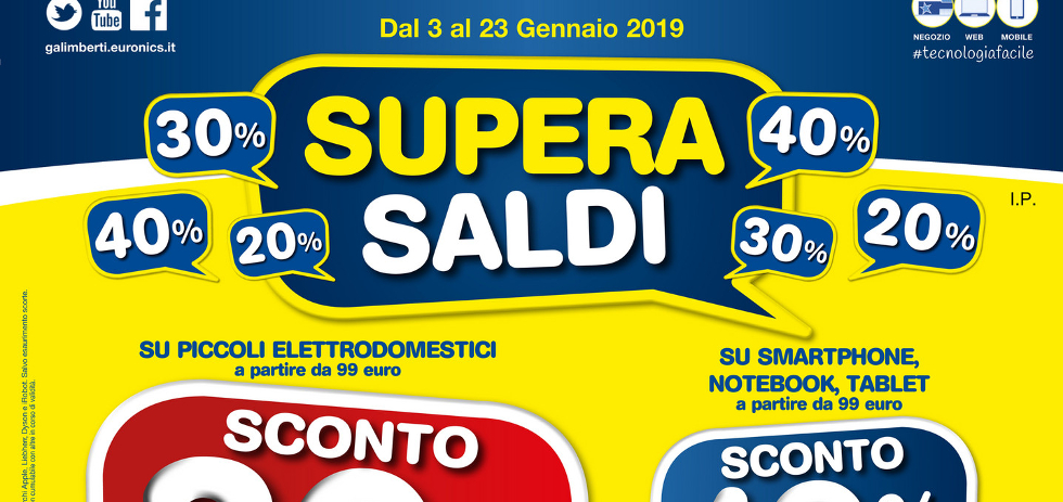 Volantino Euronics Galimberti “Supera saldi” dal 3 al 23 Gennaio 2019
