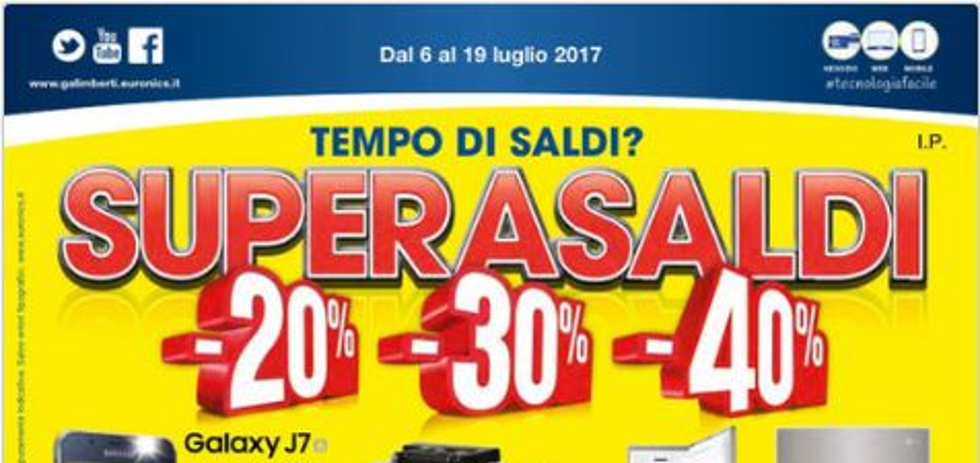 Volantino Euronics Galimberti “Superasaldi 20% 30% 40%” dal 6 al 19 Luglio 2017