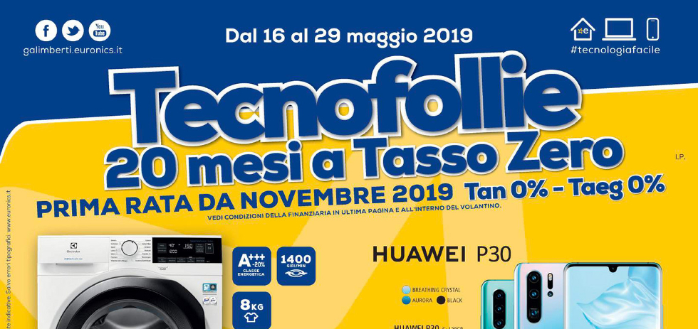 Volantino Euronics Galimberti “Tecnofollie” dal 16 al 29 Maggio 2019