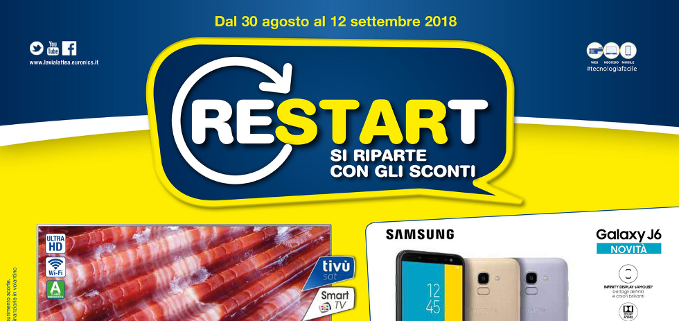 Il nuovo volantino Euronics La Via Lattea ci terrà compagnia fino al 12 Settembre 2018 e s’intitola “Restart“.