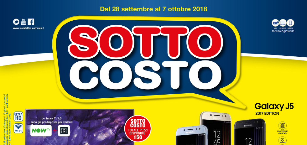 Volantino Euronics La Via Lattea “Sotto costo” dal 28 Settembre al 7 Ottobre 2018