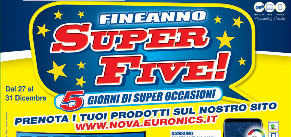 Volantino Euronics Nova “Fineanno Super Five!” dal 27 al 31 Dicembre 2017