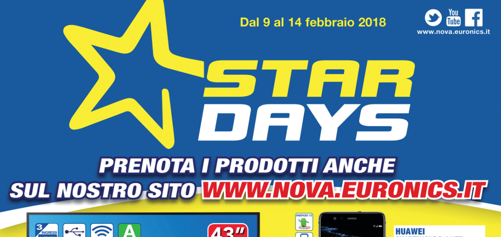 Volantino Euronics Nova “Star Days” dal 9 al 14 Febbraio 2018