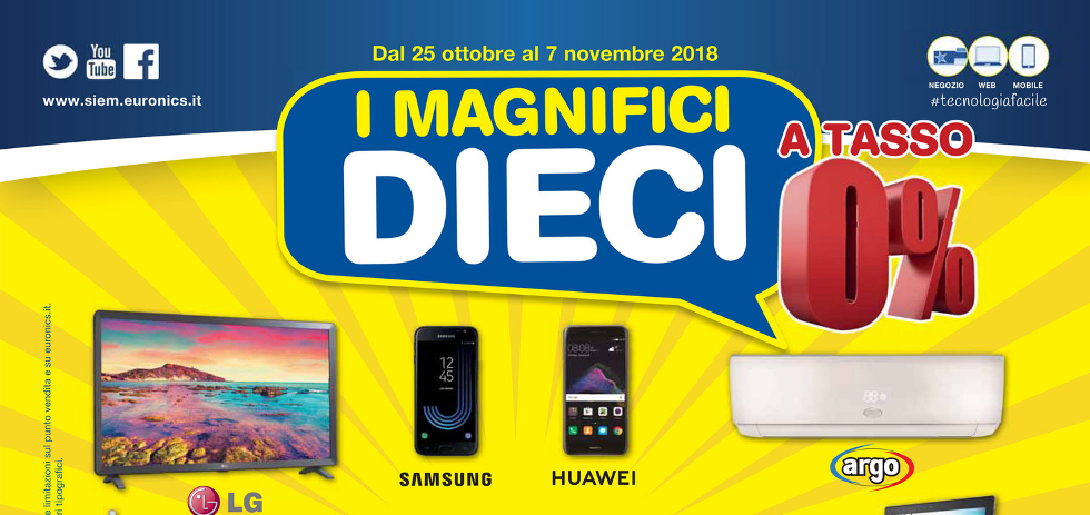 Volantino Euronics Siem “I magnifici dieci” dal 25 Ottobre al 7 Novembre 2018