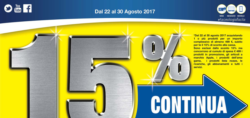 Il titolo è “– 15% continua su tutto” e ci terrà compagnia dal 22 al 30 Agosto 2017.