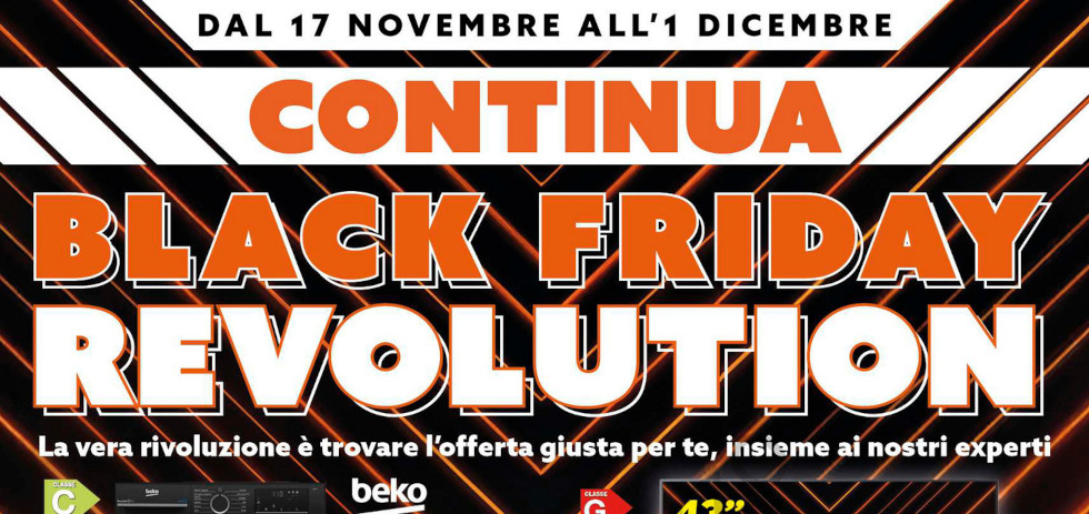 Il titolo è “Continua Black Friday Revolution” con cui è subito chiaro che prosegue il climax di sconti già iniziato la volta scorsa. Ci delizia anche questa volta con ribassi paurosi e lo vediamo già dalla copertina. Questa funge da anteprima con esempi di opportunità imperdibili estratti dalle categorie più diverse.