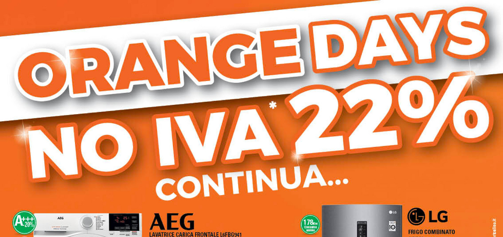 Il titolo è “Orange days no IVA 22%“, anche se però la percentuale di sconto sarà solo del 18,03%.