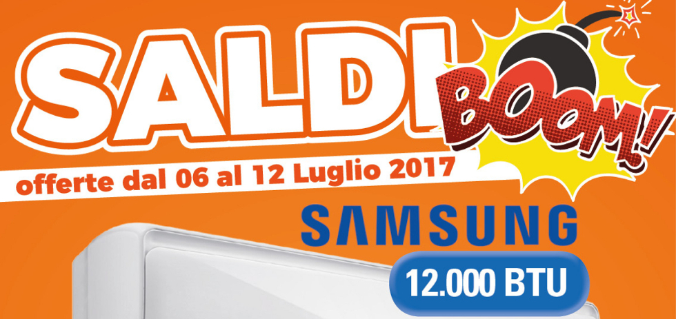 Il titolo è “Saldi boom” ed in copertina la scena viene dedicata tutta ad un condizionatore Samsung 12.00 BTU al prezzo di €396 (scontato del 35%) e che tra l’altro sembra essere l’unico presente.