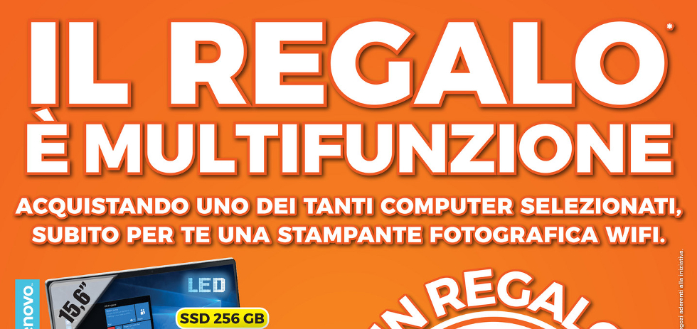 Ilo titolo del numero è “Il regalo è multifunzione” e parliamo di una stampante Epson del valore di €99 che avrete in omaggio con l’acquisto di uno dei computer selezionati dalla catena.