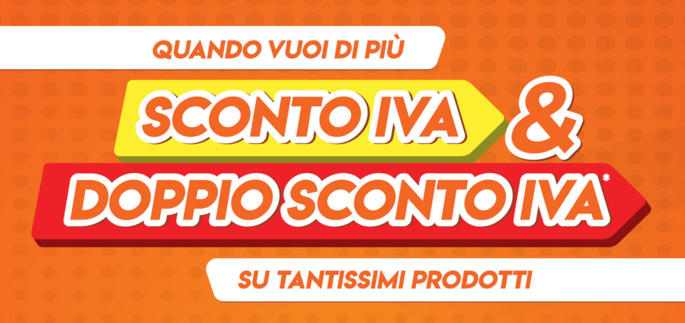 Il titolo è “Sconto IVA & doppio sconto IVA” ed in copertina troviamo la lavatrice LG 9KG A+++ a €395,79 e il TV LG 55UK6400 a €499,18.