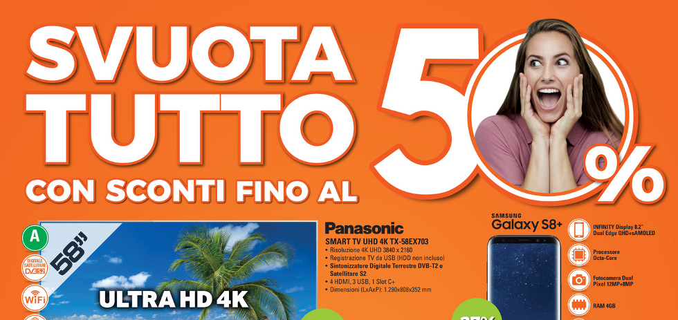 In copertina noterete sicuramente il Samsung Galaxy S8 Plus a €599, per non parlare del tv Panasonic 59″ a €699, potrete inoltre approfittare della rateizzazione tasso zero prolungabile per 10 o 20 mesi.