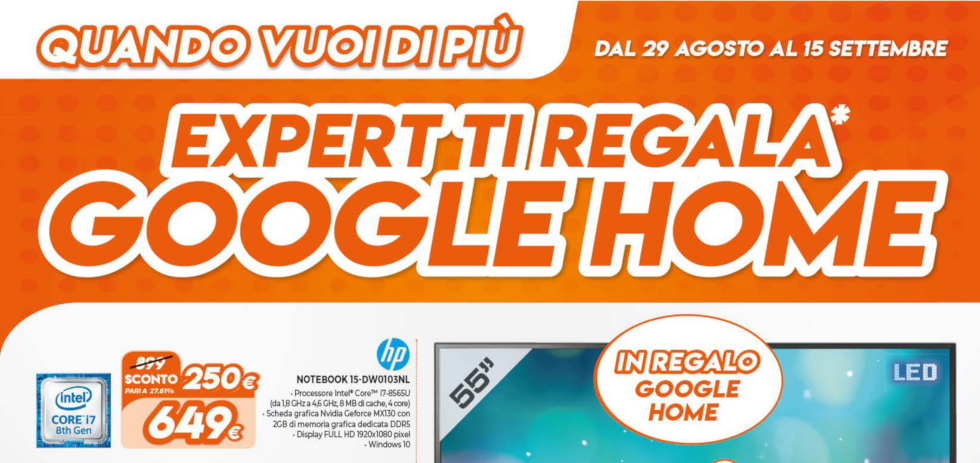 Il titolo è “Expert ti regala Google Home” e la validità andrà dal 29 Agosto al 15 Settembre 2019.