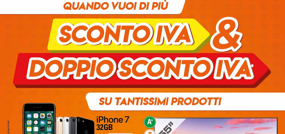 Il titolo è “Sconto IVA & doppio sconto IVA” ed in copertina abbiamo l’iPhone 7 a €398,37, scontato appunto di €87,62; sarà presente per tutti gli articoli la cifra esatta che andrete a risparmiare.