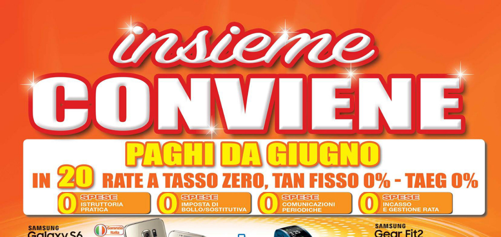 In copertina troviamo il Galaxy S6 a €369 e il Gear fit2 a €179,99 che insieme ci vengono proposti a €479.