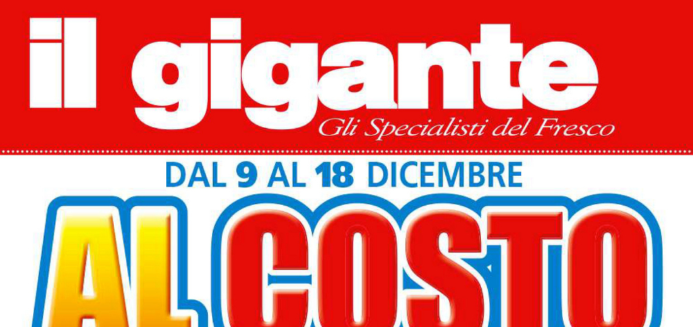 Volantino Il Gigante “Al costo” dal 9 al 18 Dicembre 2019