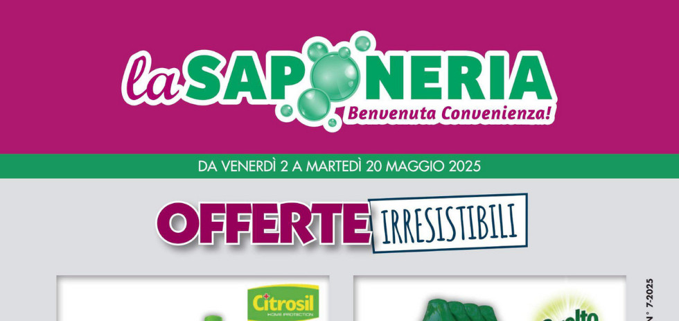 Volantino La Saponeria “Offerte irresistibili” dal 02 al 20 Maggio 2025