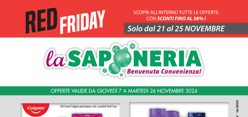Volantino La Saponeria “Red Friday” dal 07 al 26 Novembre 2024