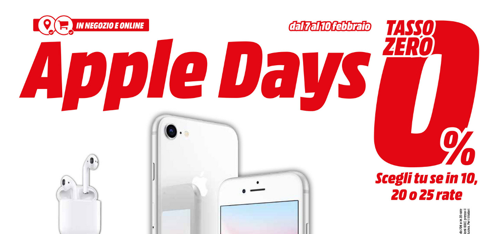 Volantino MediaWorld “Apple Days” dal 7 al 10 Febbraio 2019