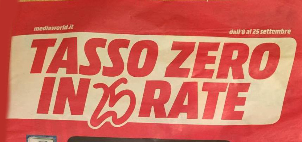 Quest’anno, abbiamo avuto modo di imparare che il 2016 è l’anno del 25esimo anniversario di Media World ed infatti, tra i titoli dei vari volantini MediaWorld, questo numero è stato spesso importante per diverse promozioni lanciate dalla catena: tra queste troviamo anche la prossima, ovvero prodotti a tasso zero in 25 rate!