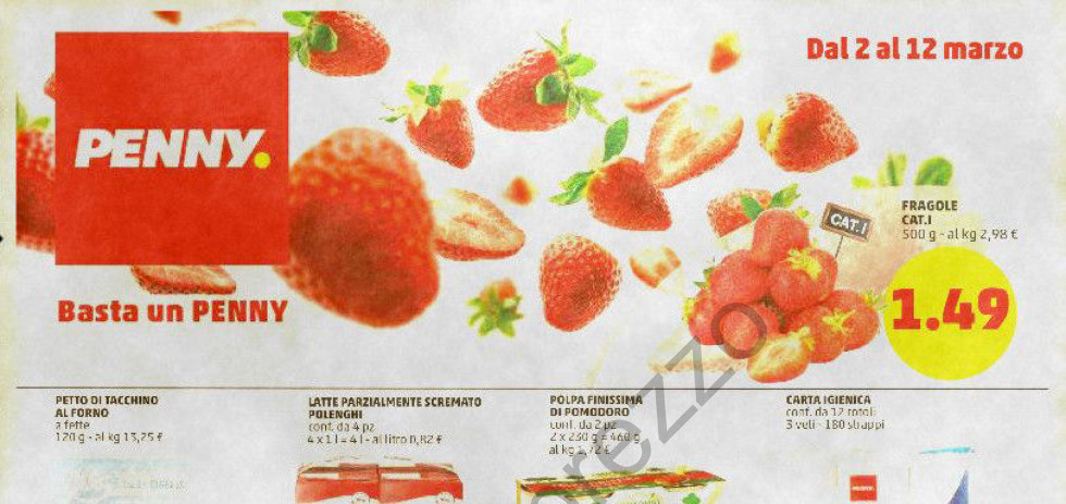 In copertina troviamo subito la frutta più attesa dell’anno, ovvero le fragole a €1,49! In più abbiamo qui sia formati scorta che quelli ordinari, come la confezione da 4 di latte Polenghi a €3,29 o il petto di tacchino a €1,59. Inoltre, la catena già ci anticipa qui che è tornato il cashback!
