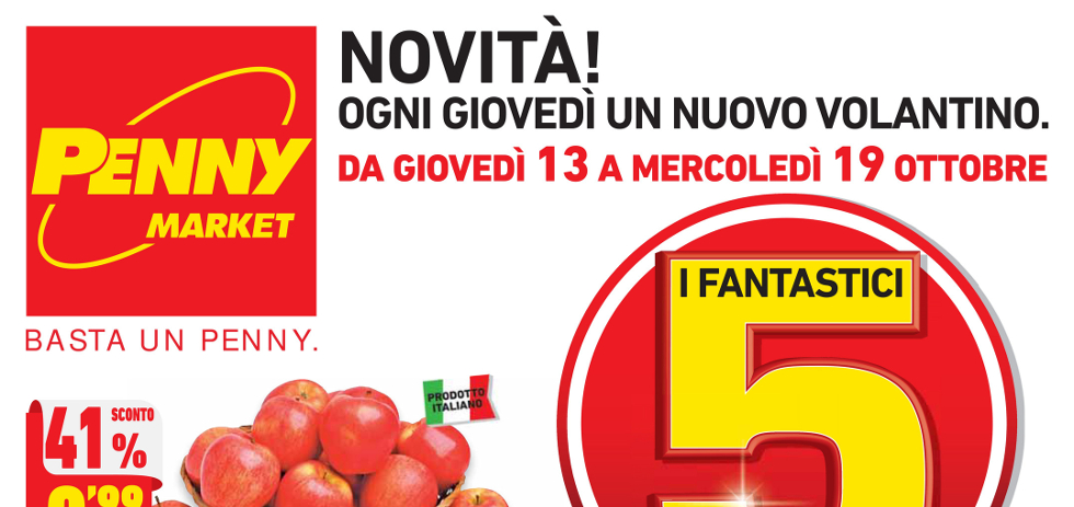 Penny market si presenta sul nostro blog con l’anteprima del nuovo volantino che sarà valido dal 13 al 19 Ottobre 2016 e s’intitola “I fantastici 5“.