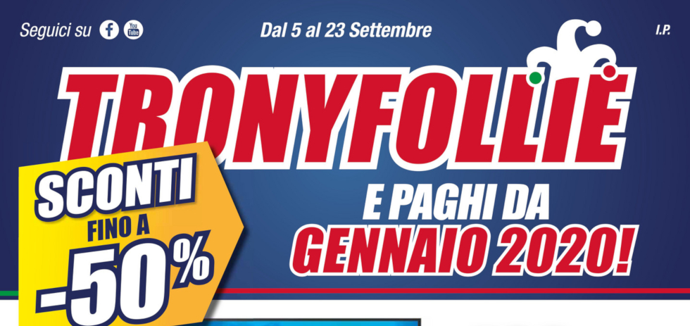 Volantino Trony “Tronyfollie” dal 5 al 23 Settembre 2019