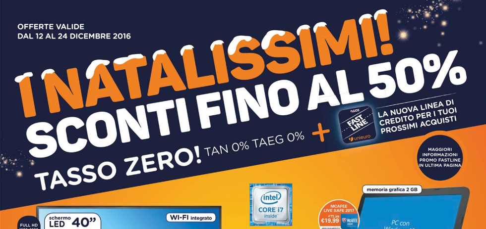 Volantino Unieuro “I natalissimi ” dal 12 al 24 Dicembre 2016