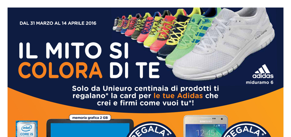 La novità di questo volantino è che Unieuro regalerà un paio di scarpe Adidas Midurno 6 insieme all’acquisto di alcuni prodotti che troverete in questo volantino.