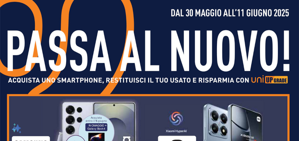 Volantino Unieuro “Passa al nuovo!” dal 30 Maggio all’11 Giugno 2025