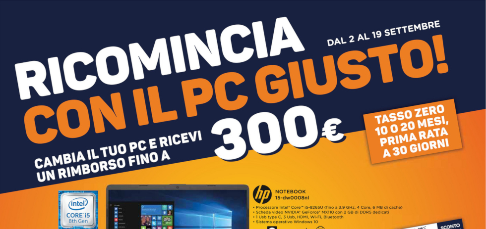 Il titolo è “Ricomincia con il PC giusto“, chiaramente dedicato a chi a Settembre dovrà ritornare a lavoro o ricominciare la scuola.