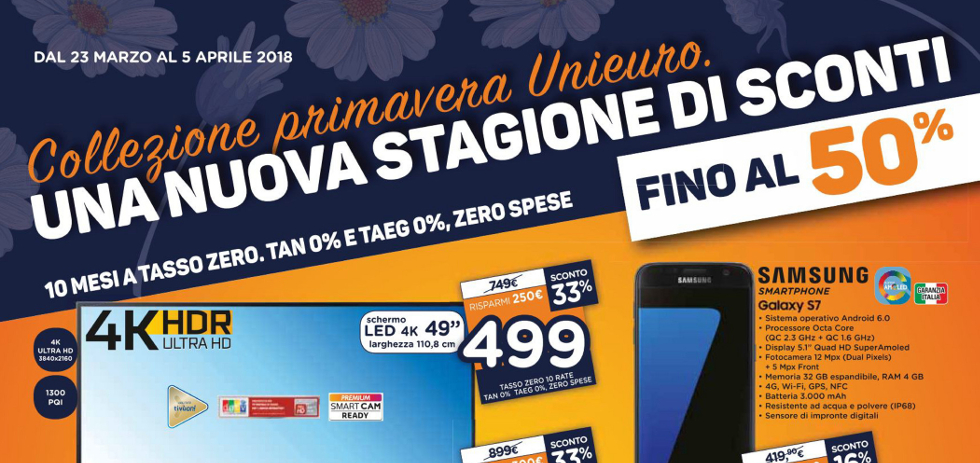 Volantino Unieuro “Una nuova stagione di sconti” dal 23 Marzo al 5 Aprile 2018